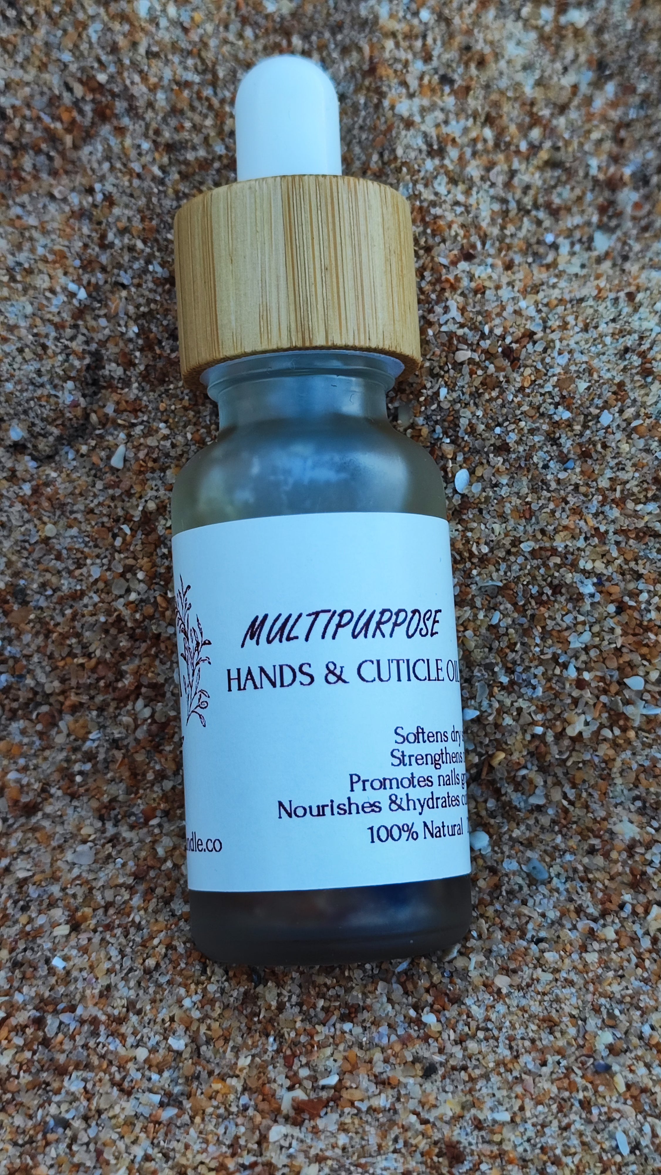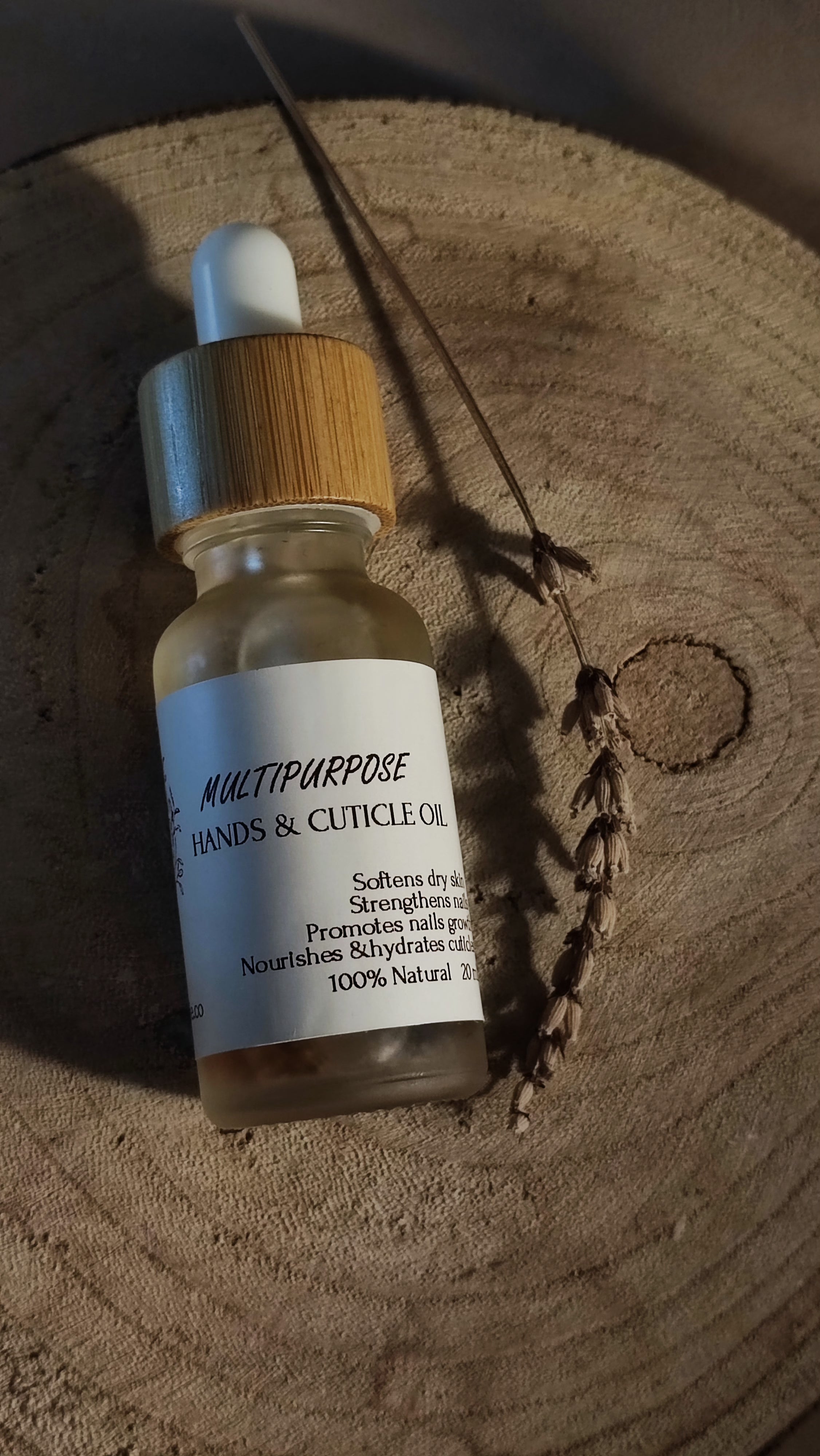 Light, fast-absorbing oil. Apply a drop to cuticles, nails, or dry areas and gently massage until absorbed. Use whenever your hands need a moment of care.