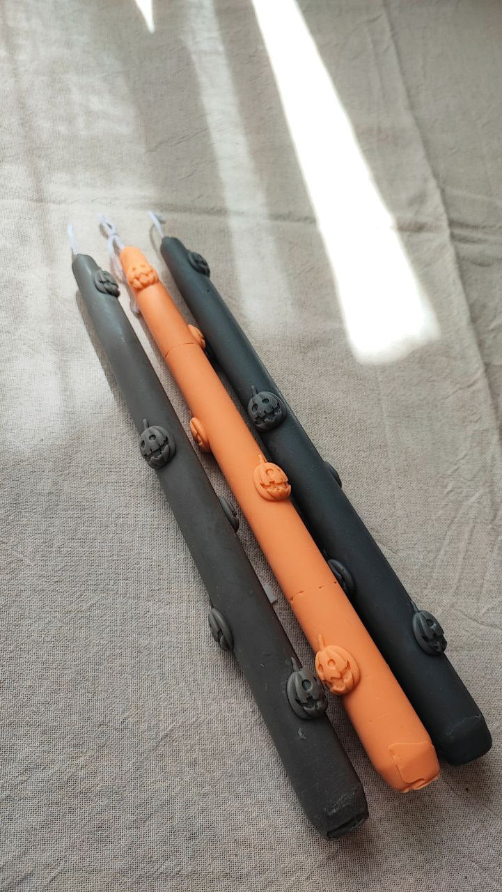 Elevate your Halloween decor with our handcrafted beeswax taper candles featuring intricate pumpkin designs. These unique candles are made from pure beeswax, offering a warm, natural glow and a subtle honey fragrance. The embossed pumpkins add a touch of whimsy and create a festive atmosphere. Perfect for creating a cozy and inviting ambiance in your home.